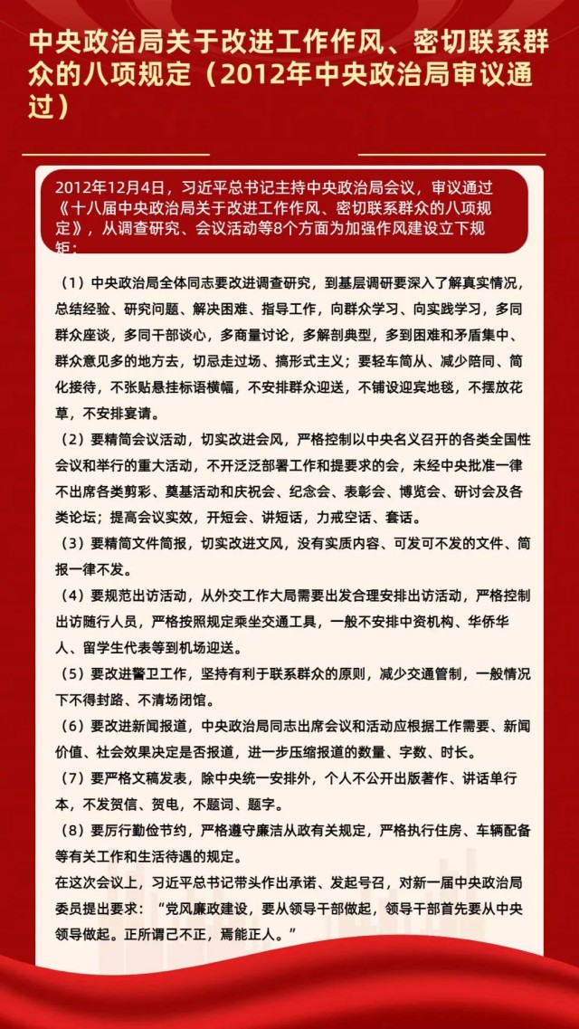 黨的作風(fēng)就是黨的形象,關(guān)系人心向背,決定黨和國家事業(yè)成敗。黨的十八大以來,以習(xí)近平同志為核心的黨中央從制定和落實(shí)中央八項(xiàng)規(guī)定開局破題,堅(jiān)持自上而下、以上率下,解決了新形勢下作風(fēng)建設(shè)抓什么、怎么抓的問題。八項(xiàng)規(guī)定一子落地,作風(fēng)建設(shè)滿盤皆活,黨風(fēng)政風(fēng)煥然一新,社風(fēng)民風(fēng)持續(xù)向好,我們黨以作風(fēng)建設(shè)新氣象贏得了人民群眾信任擁護(hù)。