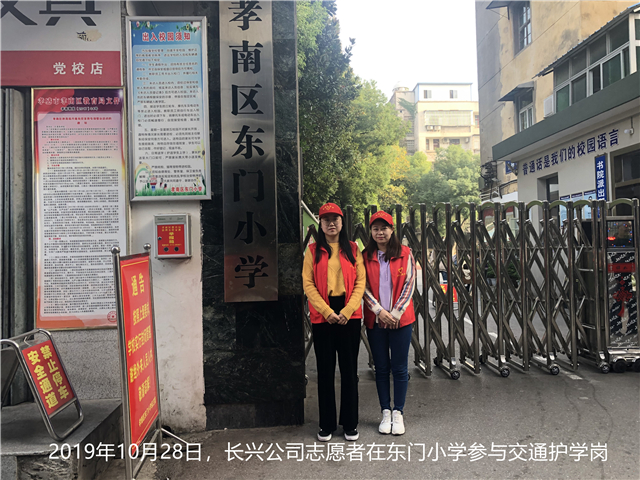 依據(jù)“不忘初心,牢記使命”主題教育活動(dòng)和以加強(qiáng)校園安全、預(yù)防青少年違法犯罪、安全維穩(wěn)工作為主要內(nèi)容,保護(hù)孩子們安全上學(xué),長興公司組織干部職工于2019年10月28日至10月29日,在孝南區(qū)東門小學(xué)開展了“文明交通護(hù)學(xué)崗”志愿服務(wù)活動(dòng),為孩子們營造了一個(gè)安全,溫馨,暢通的安全通道?!皭坌淖o(hù)學(xué)”志愿服務(wù)隊(duì)在每天上午7::30-8:30,下午5:15-6:00上崗,協(xié)助執(zhí)勤交警勸阻亂穿馬路的行人和非機(jī)動(dòng)車,維護(hù)交通秩序,引導(dǎo)學(xué)生安全出校園,安全過馬路,教育學(xué)生養(yǎng)成良好的行為習(xí)慣,做文明有禮貌的好學(xué)生。